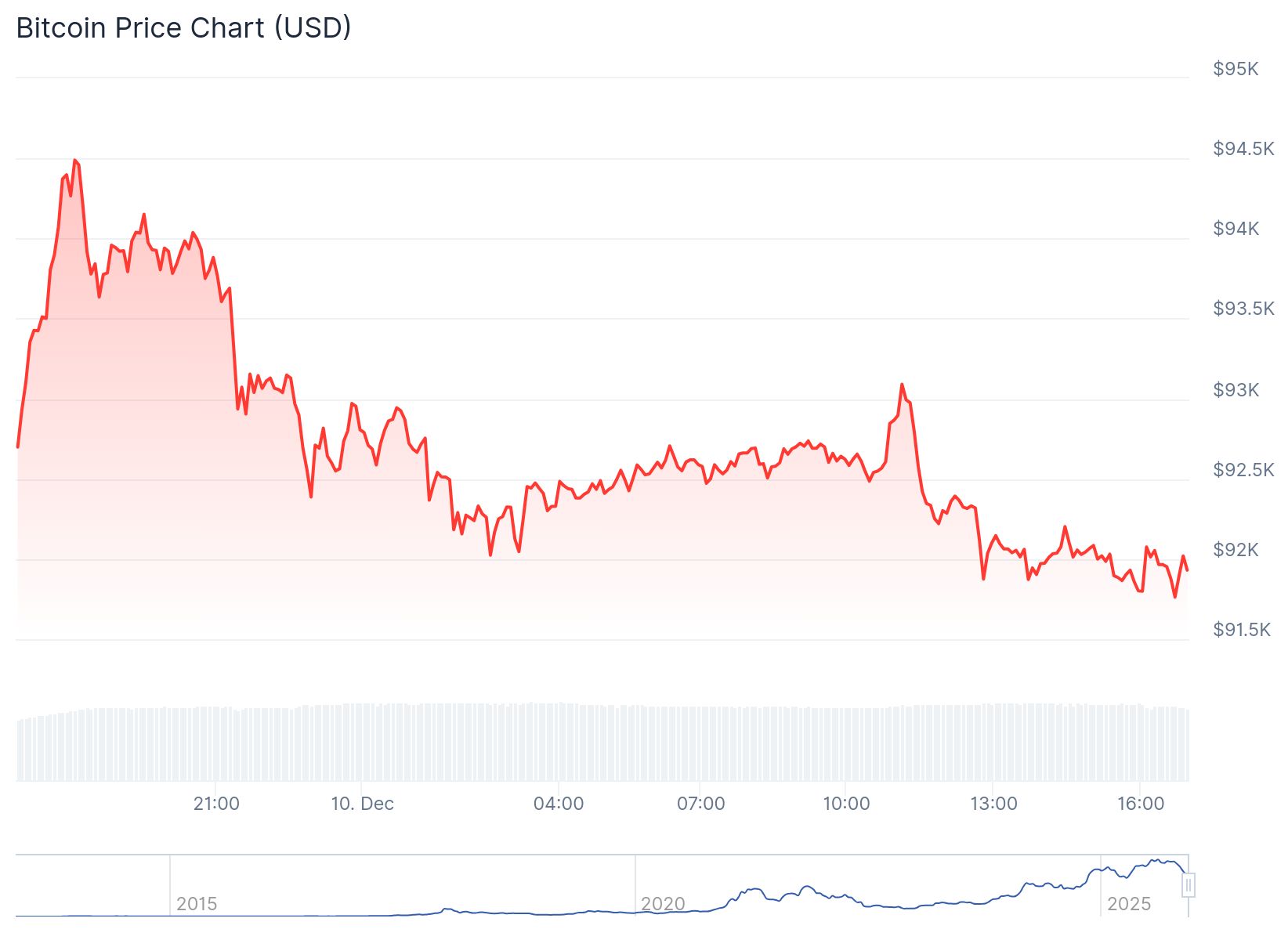 Es un gran contraste con ayer, cuando el precio de Bitcoin subió más de un 5% en poco tiempo, pasando de 90,000 dólares a un pico de 94,600 dólares.