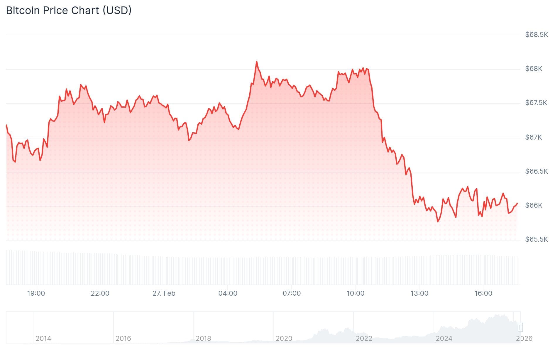 Además, ocurrió muy rápidamente. A las 10:30 de la mañana, se pagaban 68.000 dólares por la criptomoneda y menos de dos horas después, bajó a 66.000 dólares. El precio más bajo registrado fue de 65.665 dólares.
