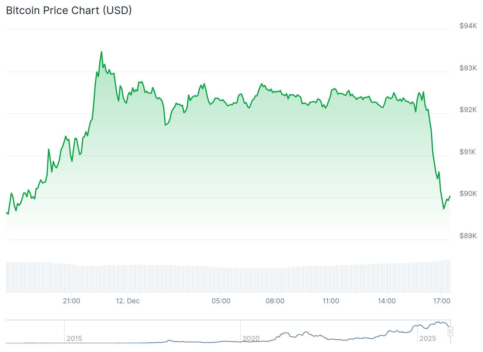 Ayer tarde por la noche, se alcanzó un pico de 93,600 dólares. Desde ese momento, ha retrocedido más del 4 por ciento.