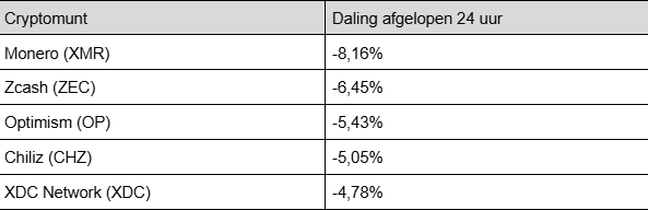 A continuación, los mayores perdedores del top 100 en las últimas 24 horas: