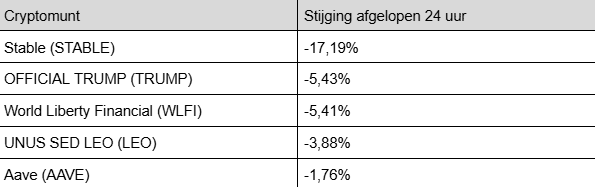 No todos están en verde de nuevo. A continuación, los principales perdedores del top 100 en las últimas 24 horas: