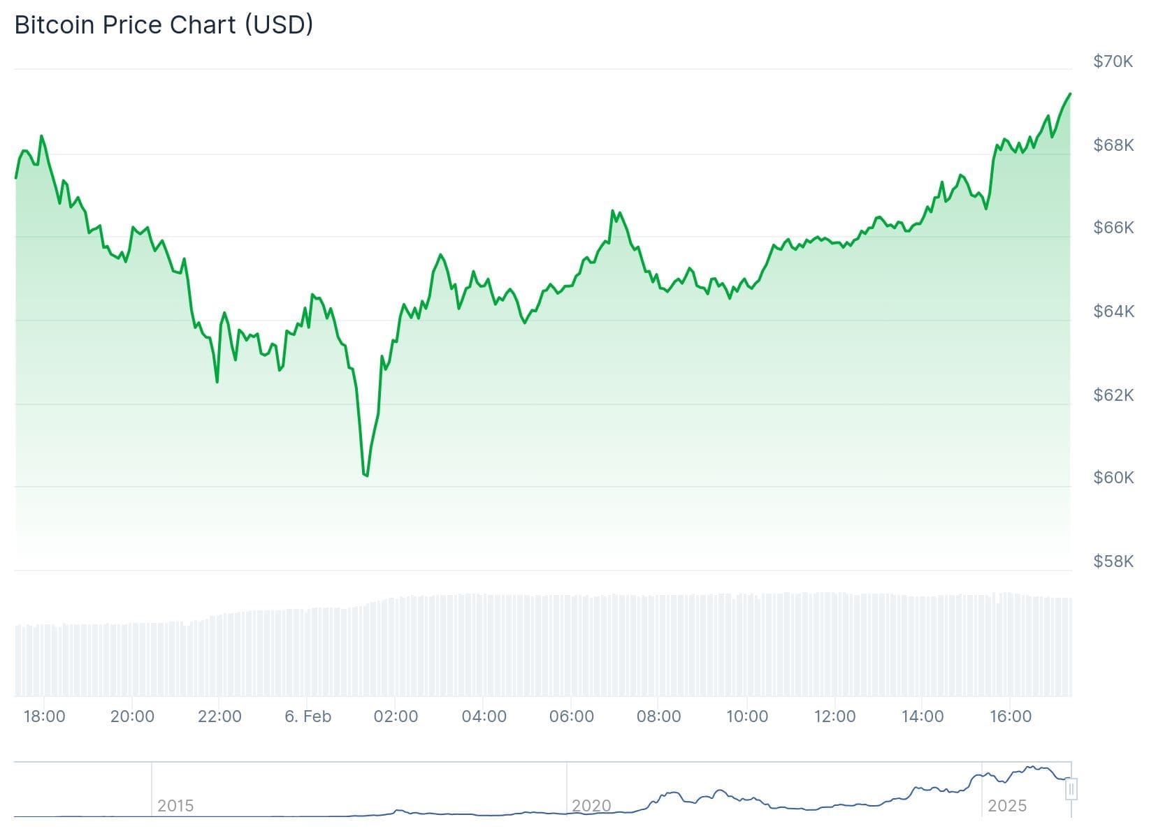 Esta madrugada se alcanzó incluso el nivel más bajo desde octubre de 2024, alrededor de 60.000 dólares. A partir de ese punto, los inversores comenzaron a comprar masivamente.