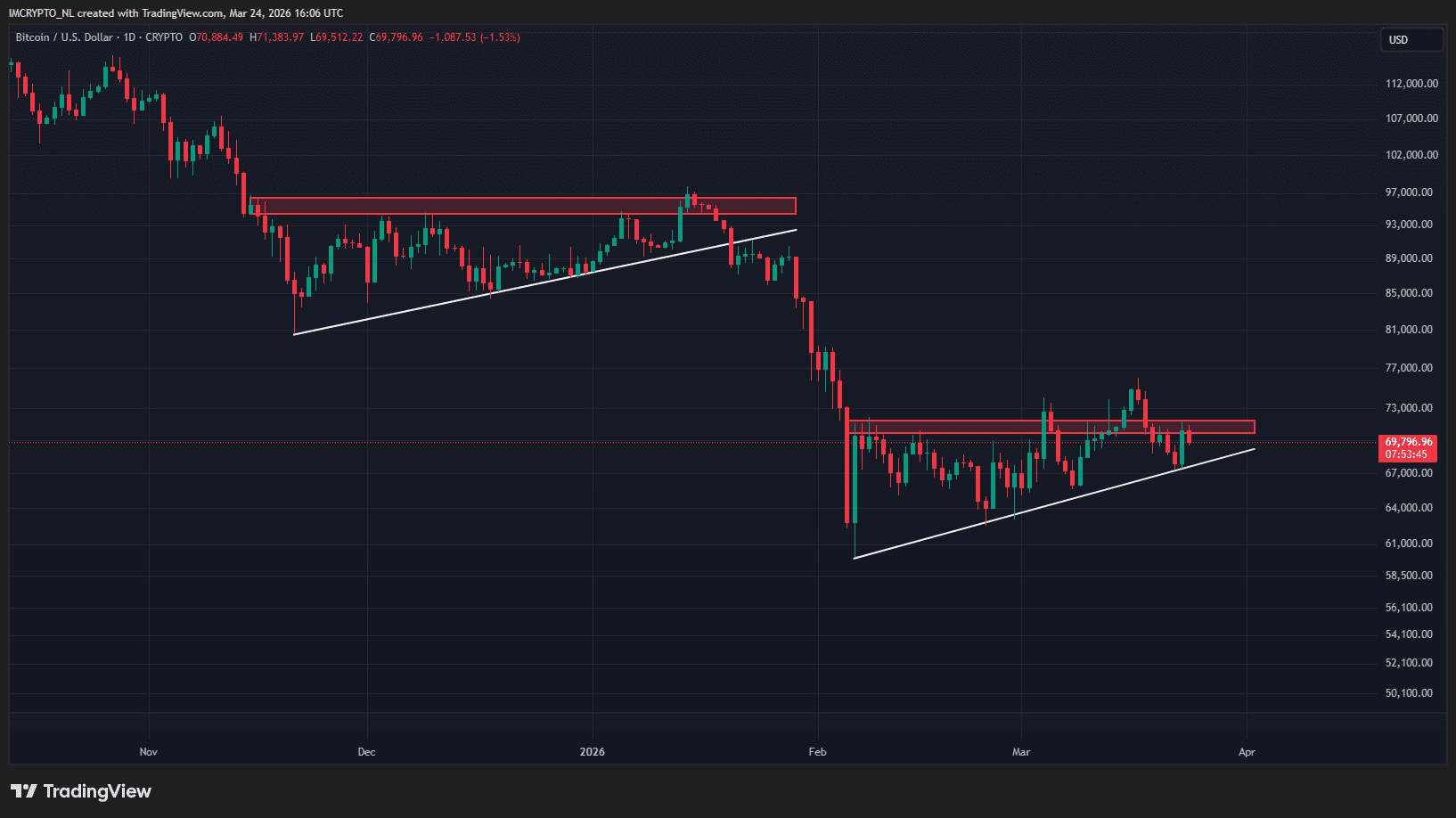 La cotización de Bitcoin se encuentra en un nivel muy importante. Por ahora, sigue luchando contra la zona de resistencia en torno a los 71.000 dólares. La mala noticia es que se observan muchas similitudes con el período de consolidación de hace unos meses.