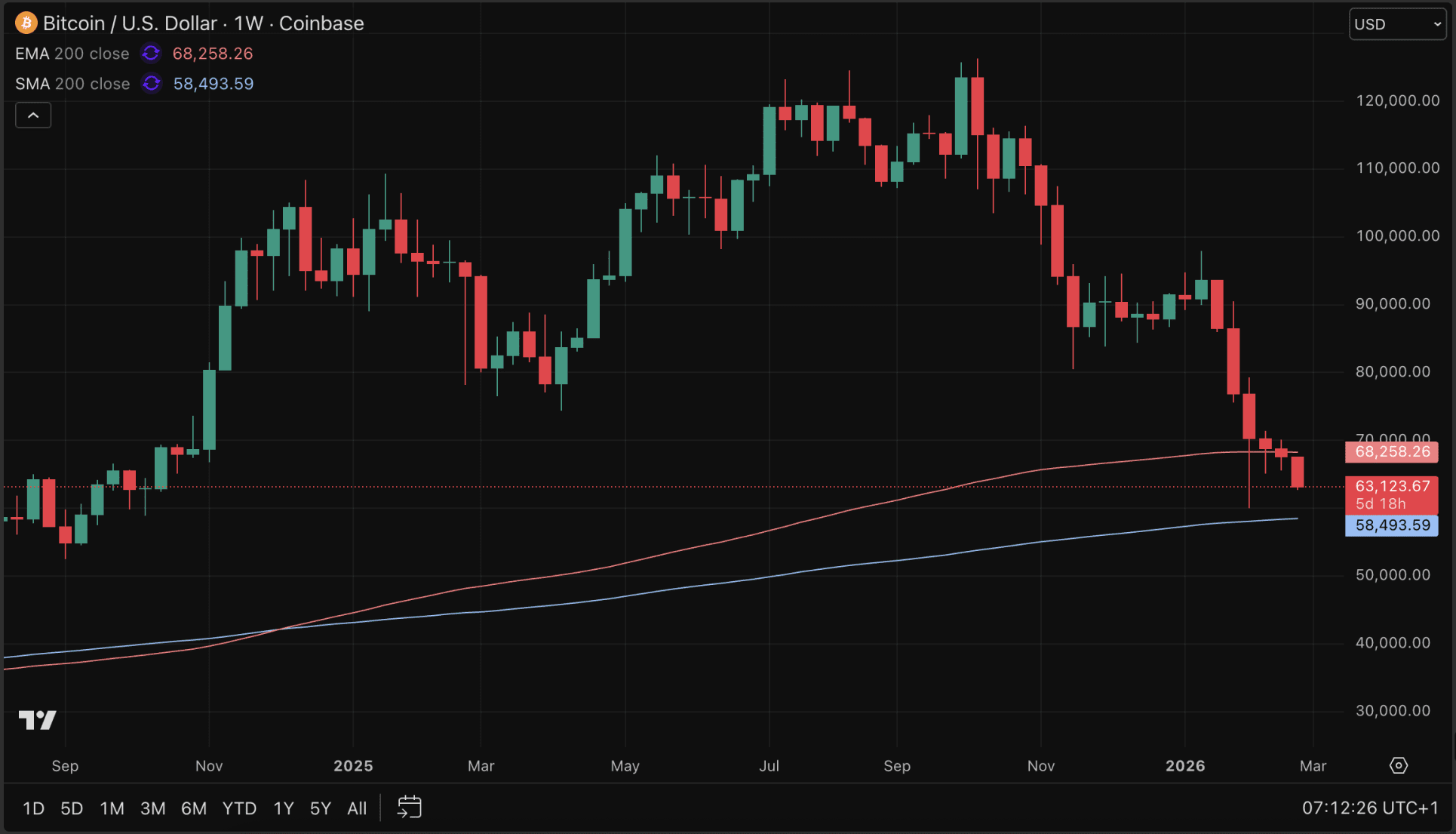 El precio de Bitcoin cae por debajo de los 63.000 dólares mientras el pánico por la IA sacude Wall Street