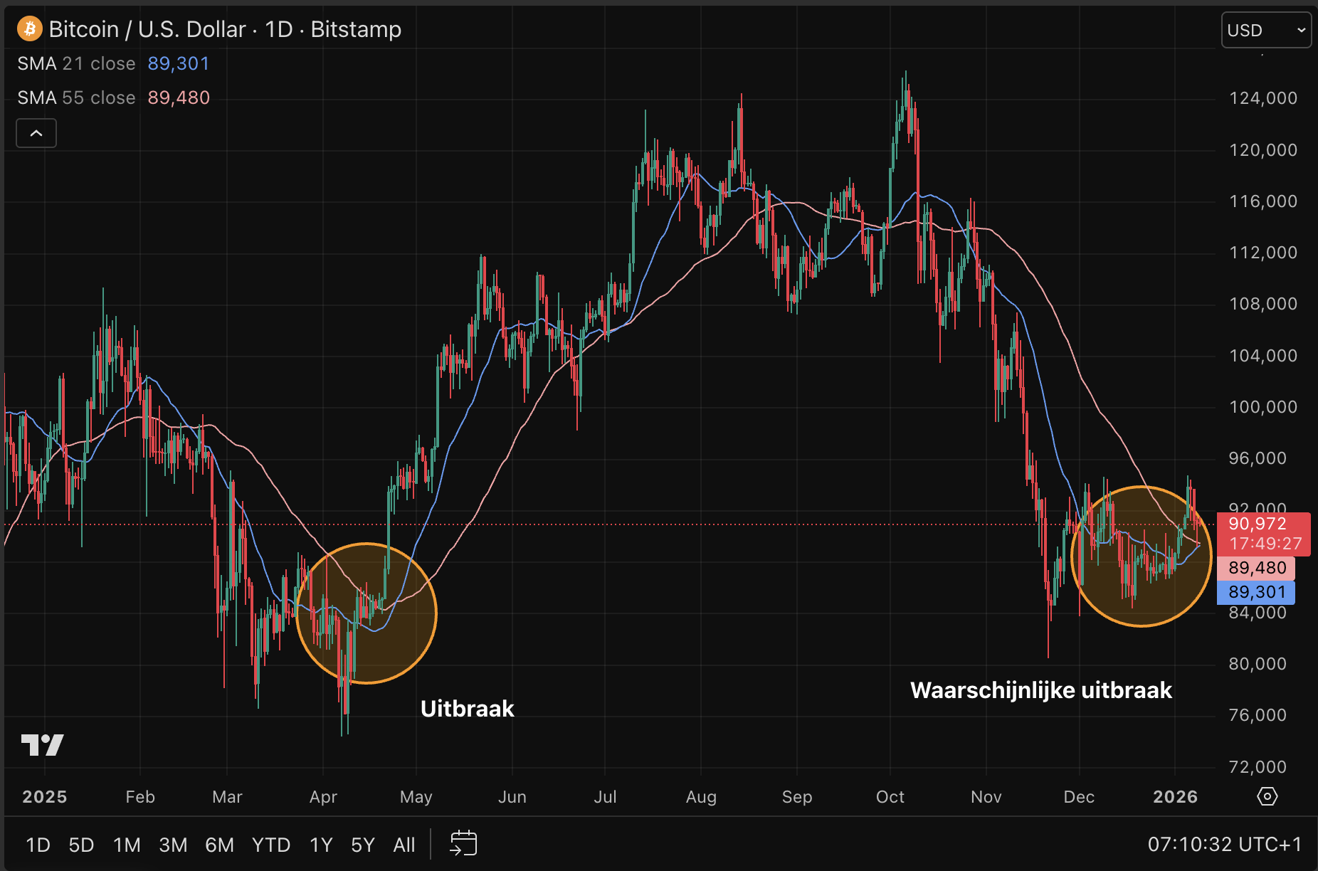 Esta dirección parece estar tomando Bitcoin actualmente, lo que es una buena señal al inicio de 2026. Anteriormente, en abril de 2025, comenzó así el ascenso desde el fondo de la caída hasta el máximo histórico de 126.000 dólares en octubre.