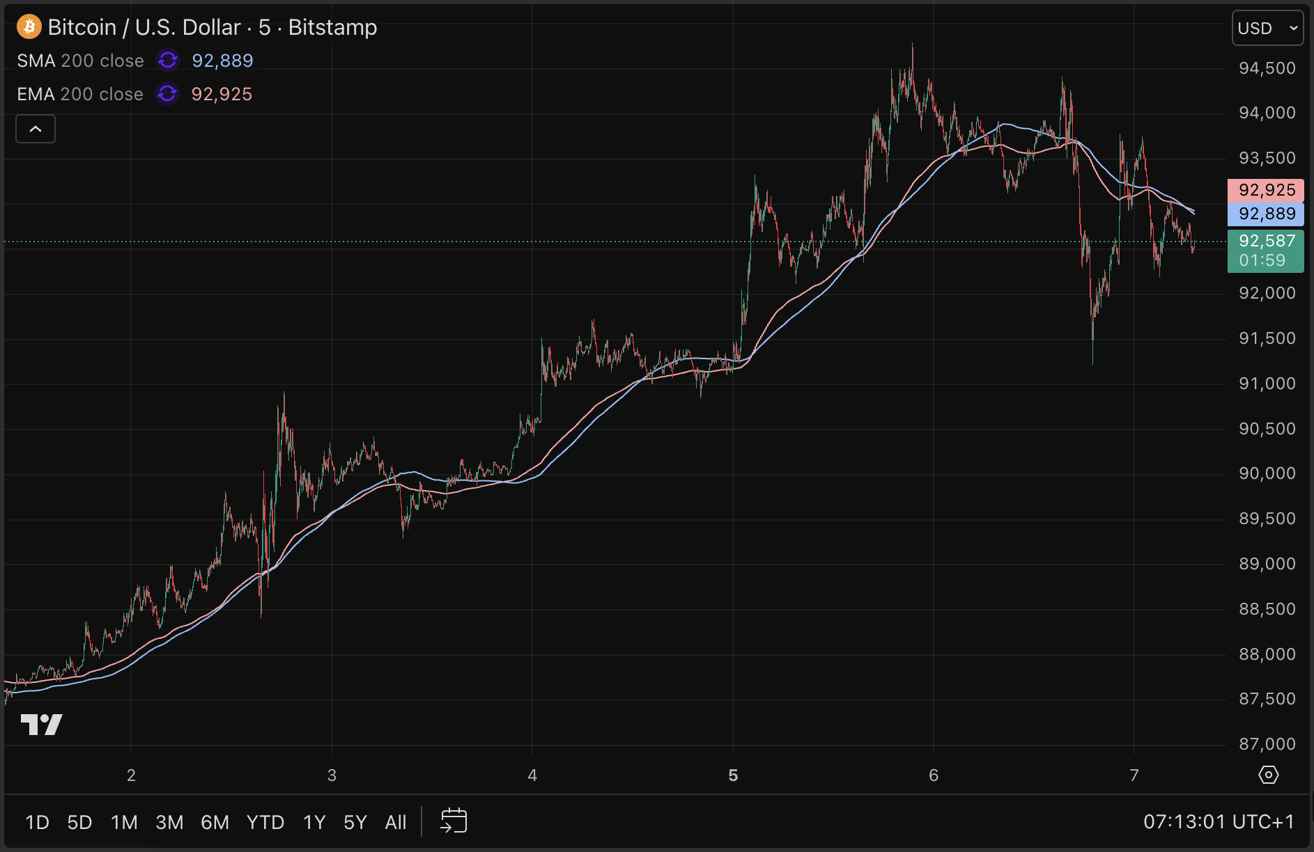 Mientras que ayer parecía que Bitcoin estaba en medio de una ruptura, esta mañana la situación es algo diferente. El precio de Bitcoin ha caído un 1,25 por ciento en las últimas 24 horas, situándose en 92.470 dólares.