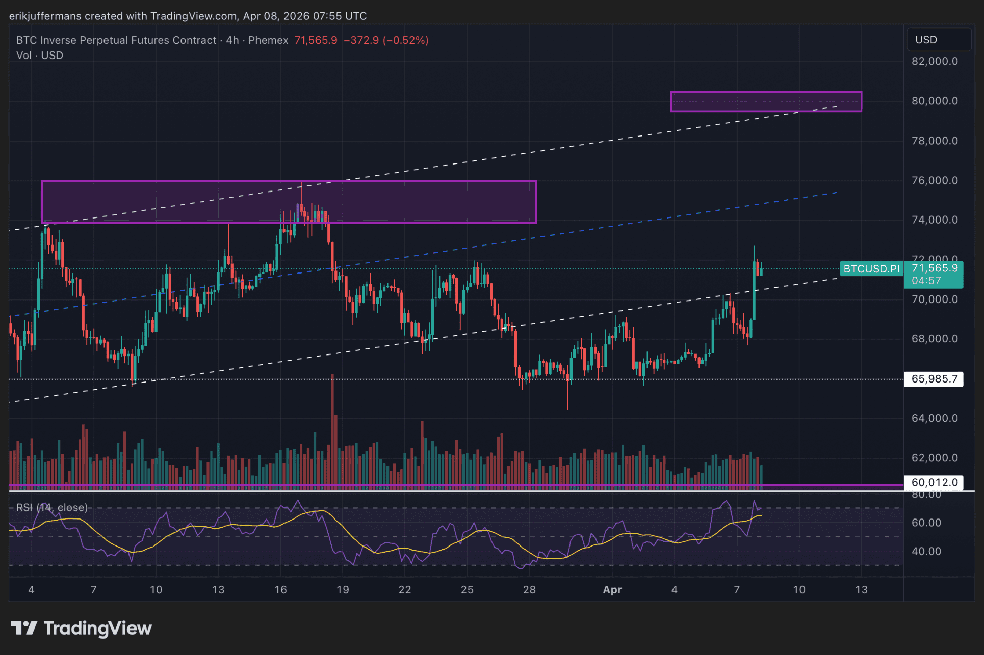 Con un optimismo sostenido sobre Medio Oriente, Juffermans ve espacio para un aumento adicional. El primer paso es un retorno al reciente pico alrededor de los 75.000 dólares. Si se supera ese nivel, los 80.000 dólares se perfilan como el segundo objetivo.
