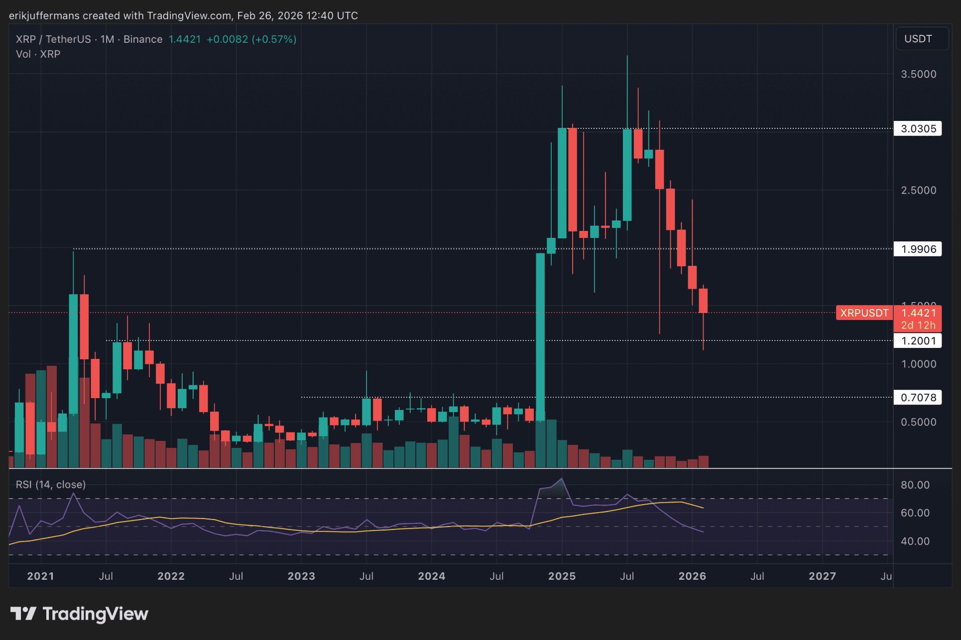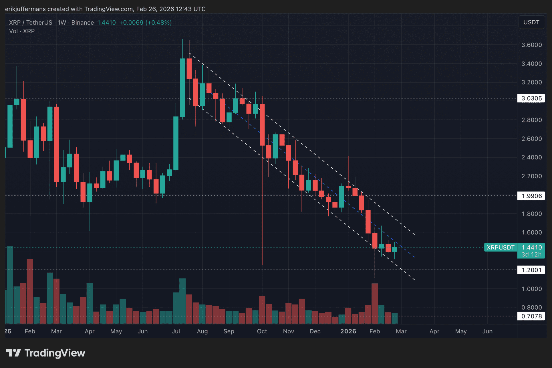 XRP prueba soporte de varios años alrededor de 1,37 dólares. Un analista señala que es prematuro declarar un mercado bajista.