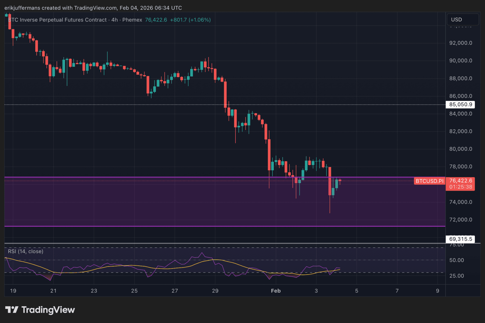 Aun así, es necesario ser cauteloso. Mientras el precio de Bitcoin se mantenga por debajo de la resistencia alrededor de los 79.000 dólares, no hay una confirmación de suelo. Este nivel funciona actualmente como una barrera clara para la recuperación.