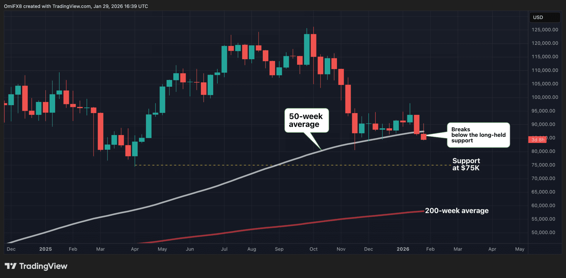 ¿Nuevo soporte en los 75.000 dólares?