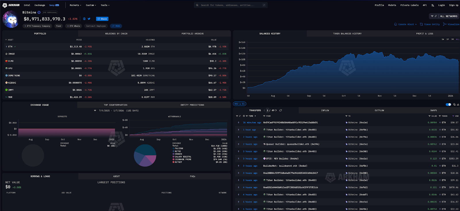 Tras la reciente adquisición, BitMine posee aproximadamente 4,07 millones de ETH. Con un precio en torno a los 3.100 dólares, esto representa un valor total de unos 12,6 mil millones de dólares.