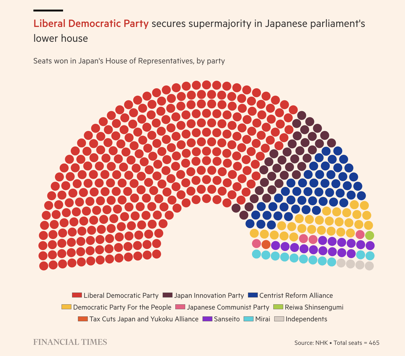 La bolsa japonesa Nikkei 225 alcanzó un nuevo récord el lunes, tras la contundente victoria electoral de la primera ministra Sanae Takaichi. Los inversores esperan que su amplia mayoría parlamentaria allane el camino para las políticas de estímulo económico que Takaichi defiende.