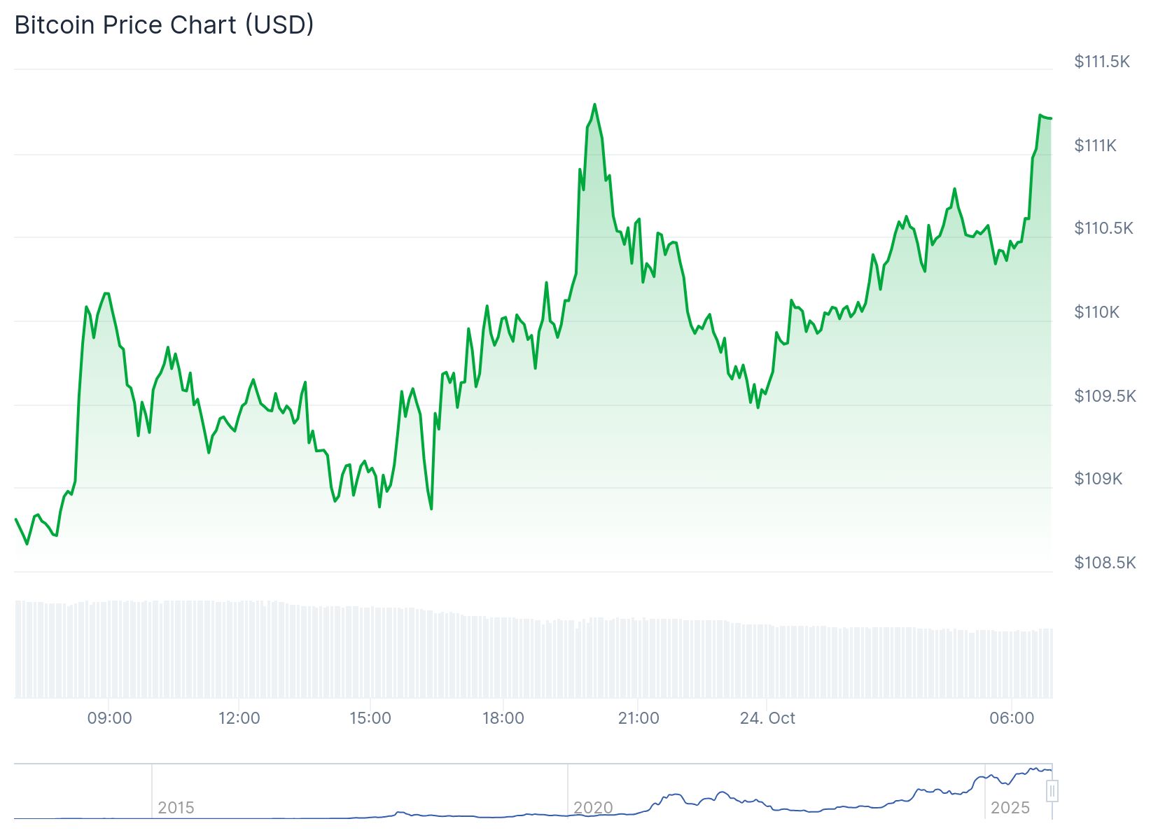 Ayer por la mañana, el precio ya pasó por los 110.000 dólares. Luego llegó un pequeño retroceso antes de dispararse más tarde en el día hasta un máximo de 111.250 dólares. Por la noche se anunció que el presidente estadounidense Donald Trump se reunirá el próximo jueves con su homólogo chino, Xi Jinping. Eso dio el último empujón.