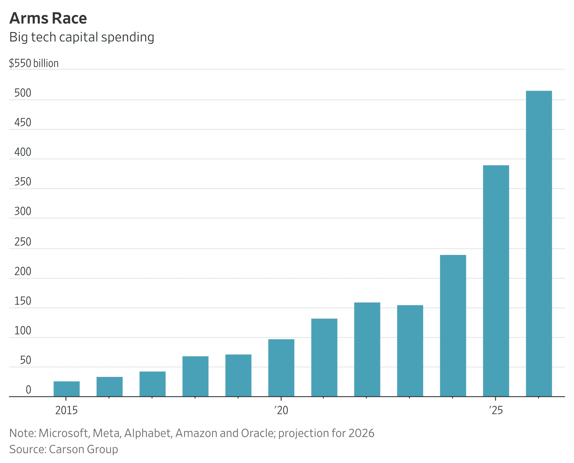Paralelamente, los gigantes tecnológicos continúan invirtiendo grandes cantidades de capital en la revolución de la inteligencia artificial, como muestra el gráfico a continuación del Carson Group. Desde esa perspectiva, es improbable que todo el entusiasmo por la IA termine próximamente.
