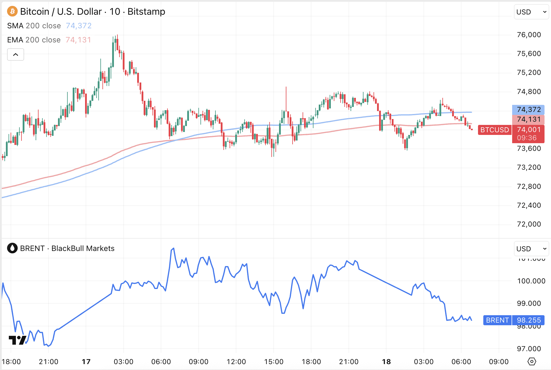 El precio de Bitcoin se mantiene hoy estable en 74.000 dólares, mientras los precios del petróleo experimentaron una fuerte caída. Con ello, el precio del crudo Brent ha vuelto a situarse por debajo de los 100 dólares. Sin embargo, este ajuste no resuelve el problema, y el alto precio del petróleo sigue amenazando a la economía mundial.