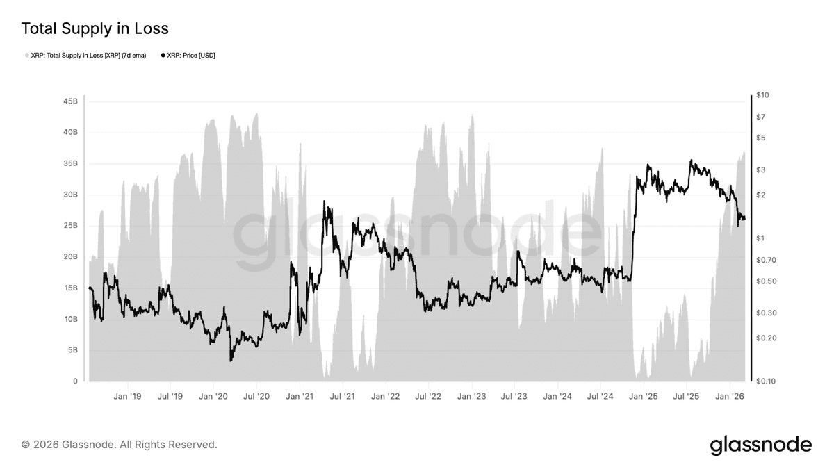 Con un suministro circulante total de aproximadamente 61,2 mil millones de XRP, esta estadÃstica indica que casi el 60 por ciento de todos los tokens están en pérdidas. La presión sobre el precio no es sorpresa. XRP ha caÃdo aproximadamente un 28 por ciento desde principios de año, después de haber perdido ya un 11,6 por ciento en 2025.