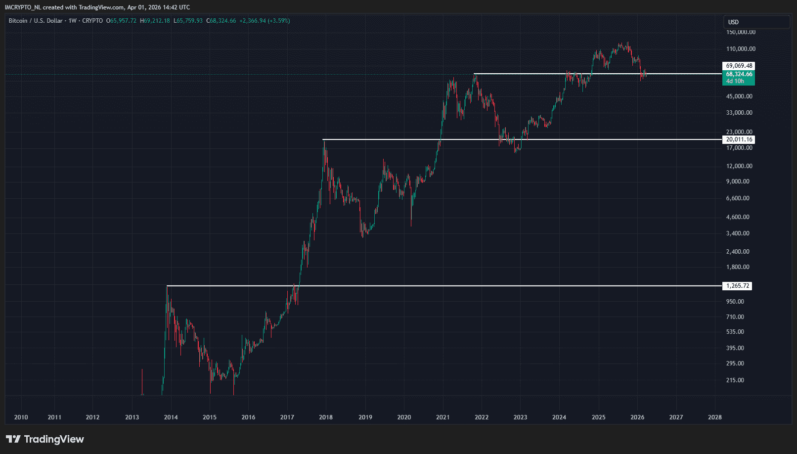 El récord de 2021 se estableció en 69,000 dólares y a principios de febrero se alcanzó un mínimo de 60,000 dólares. En los últimos dos meses, el precio ha operado la mayor parte del tiempo por debajo de ese nivel.