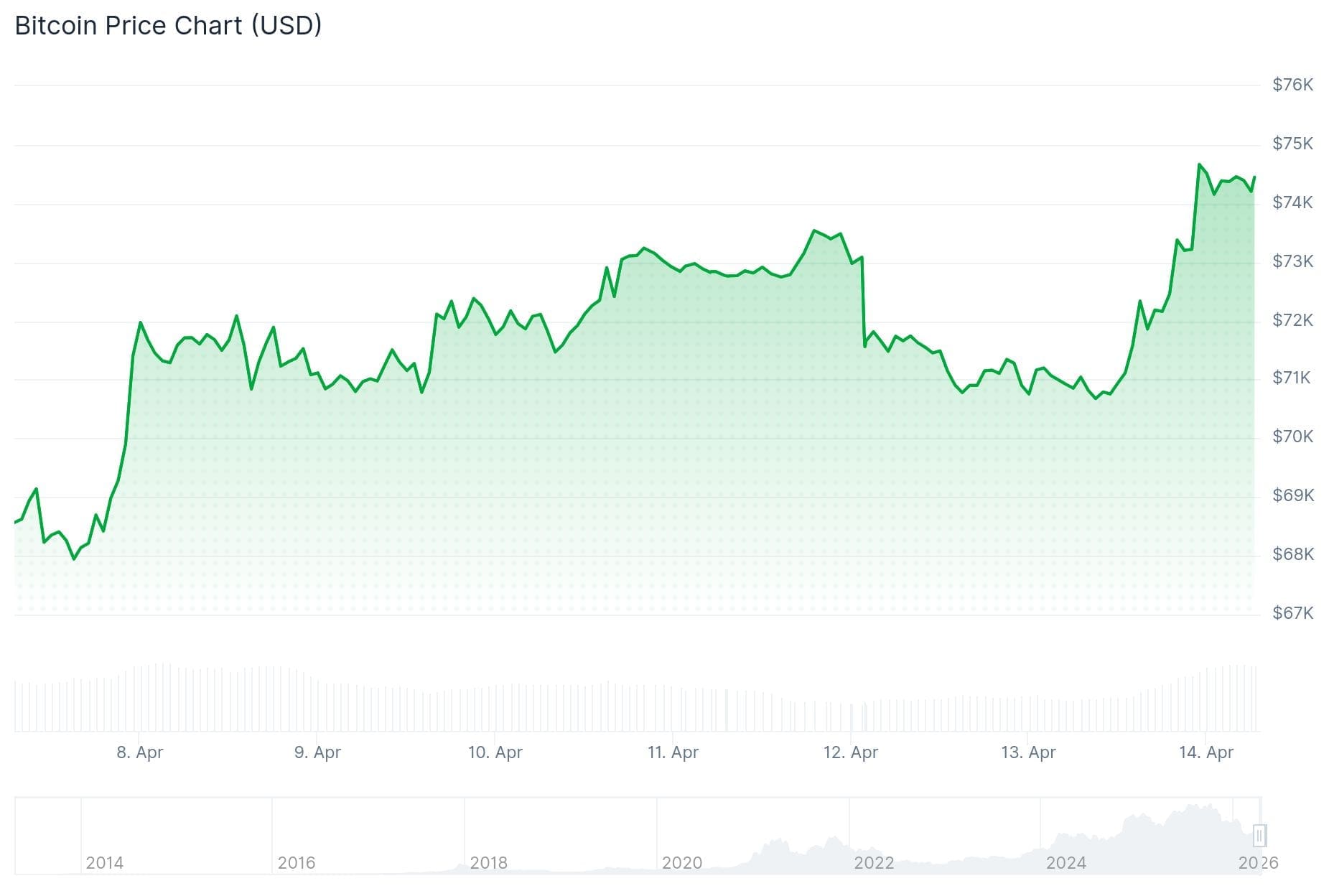 El precio de Bitcoin tuvo ayer su quinta mejor jornada del año con una ganancia de poco más del 5 por ciento. El precio, que antes estaba por debajo de los 71.000 dólares, superó con creces los 74.000 dólares.