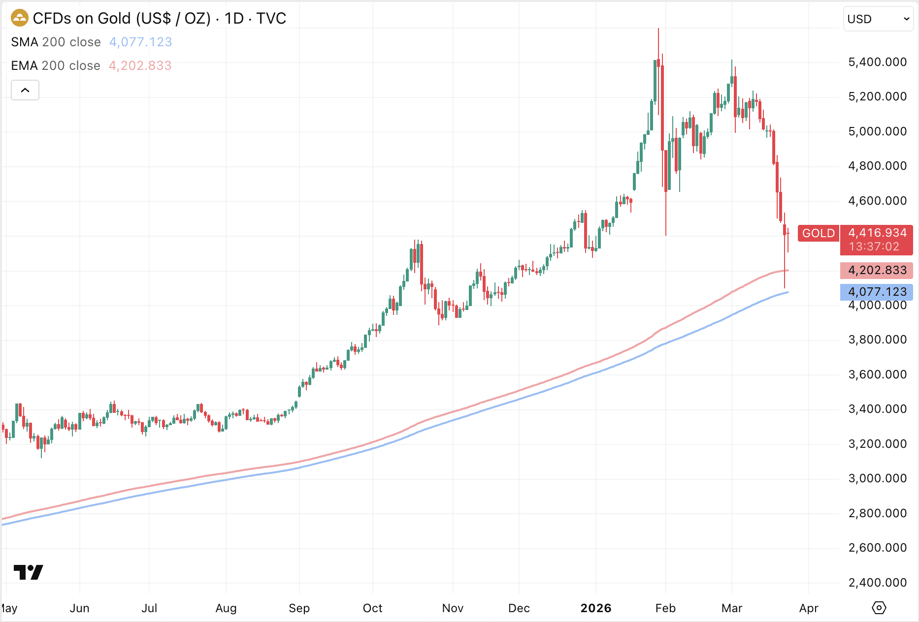 La reciente ola de ventas ha provocado que el precio del oro caiga más del 20 por ciento desde el pico de finales de enero. Con ello, el metal precioso ha perdido en poco tiempo gran parte de su prima de guerra anterior.