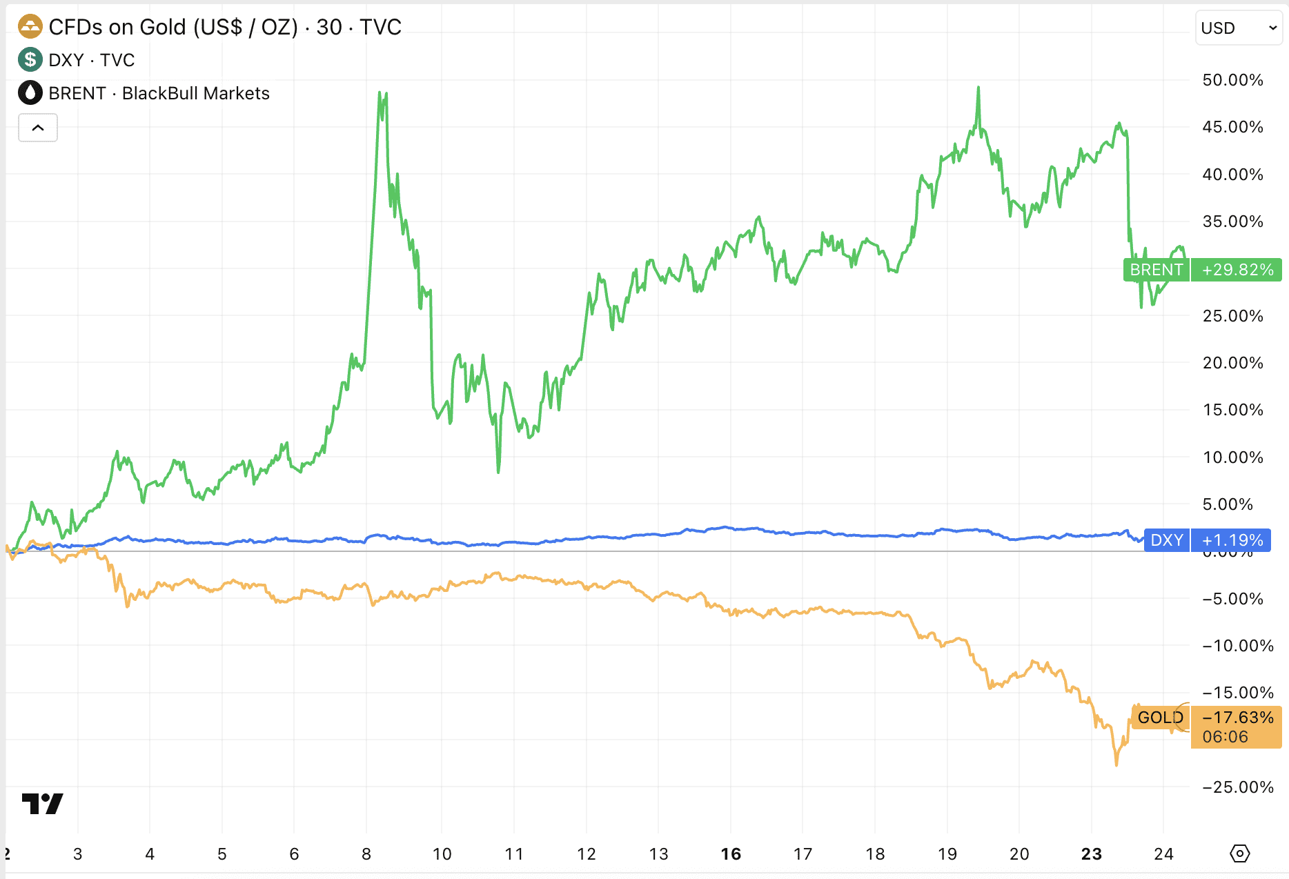 Además, las señales de una posible desescalada en el conflicto entre Estados Unidos e Irán contribuyeron a las tomas de ganancias. Menos miedo geopolítico significa generalmente una menor demanda inmediata de refugios seguros como el oro.