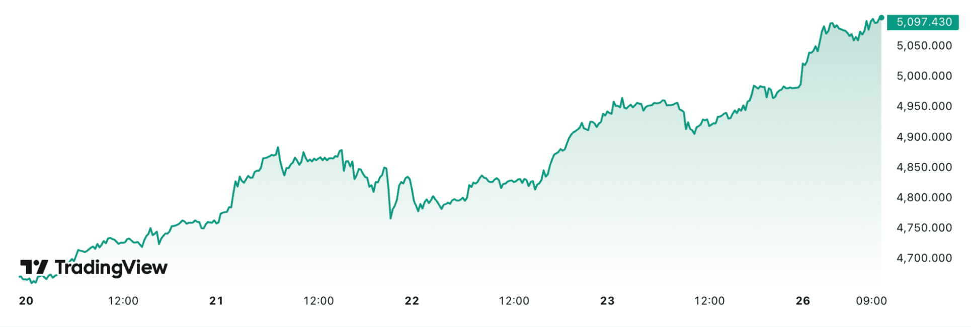 Hoy, el oro ha superado los 5.090 dólares por onza. Desde principios de año, su precio ha aumentado un 17 por ciento. Este repunte se produce en un momento de crecientes tensiones comerciales y políticas, especialmente en Estados Unidos.