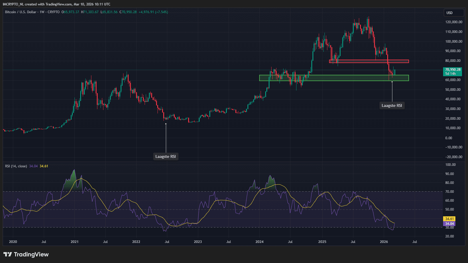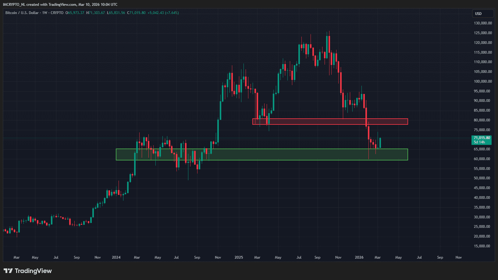 La zona de resistencia roja, aproximadamente entre 78.000 y 81.000 dólares, sería un objetivo lógico para un rally de alivio más prolongado. Si se llega a ese punto, habrá que reevaluar la situación.