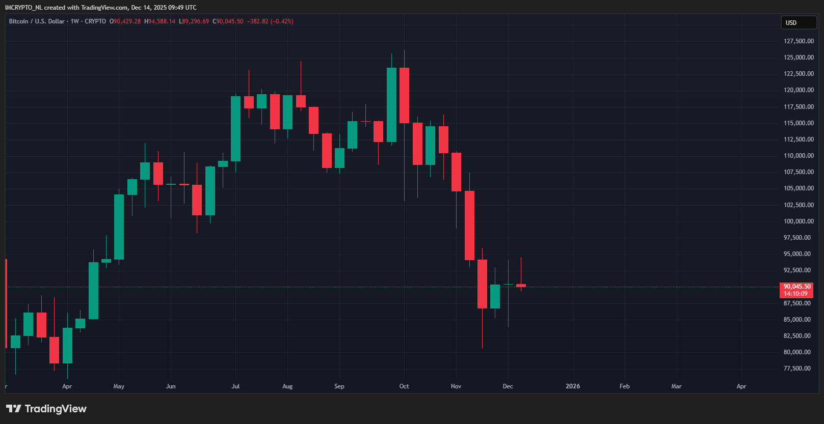 Aún queda tiempo para intentar salvar la vela de la semana, pero parece que no veremos mucha acción. El precio ha caído ligeramente un 0.49 por ciento en el último día. En el momento de escribir, aproximadamente 90,000 dólares es el precio que se paga por la criptomoneda más grande.