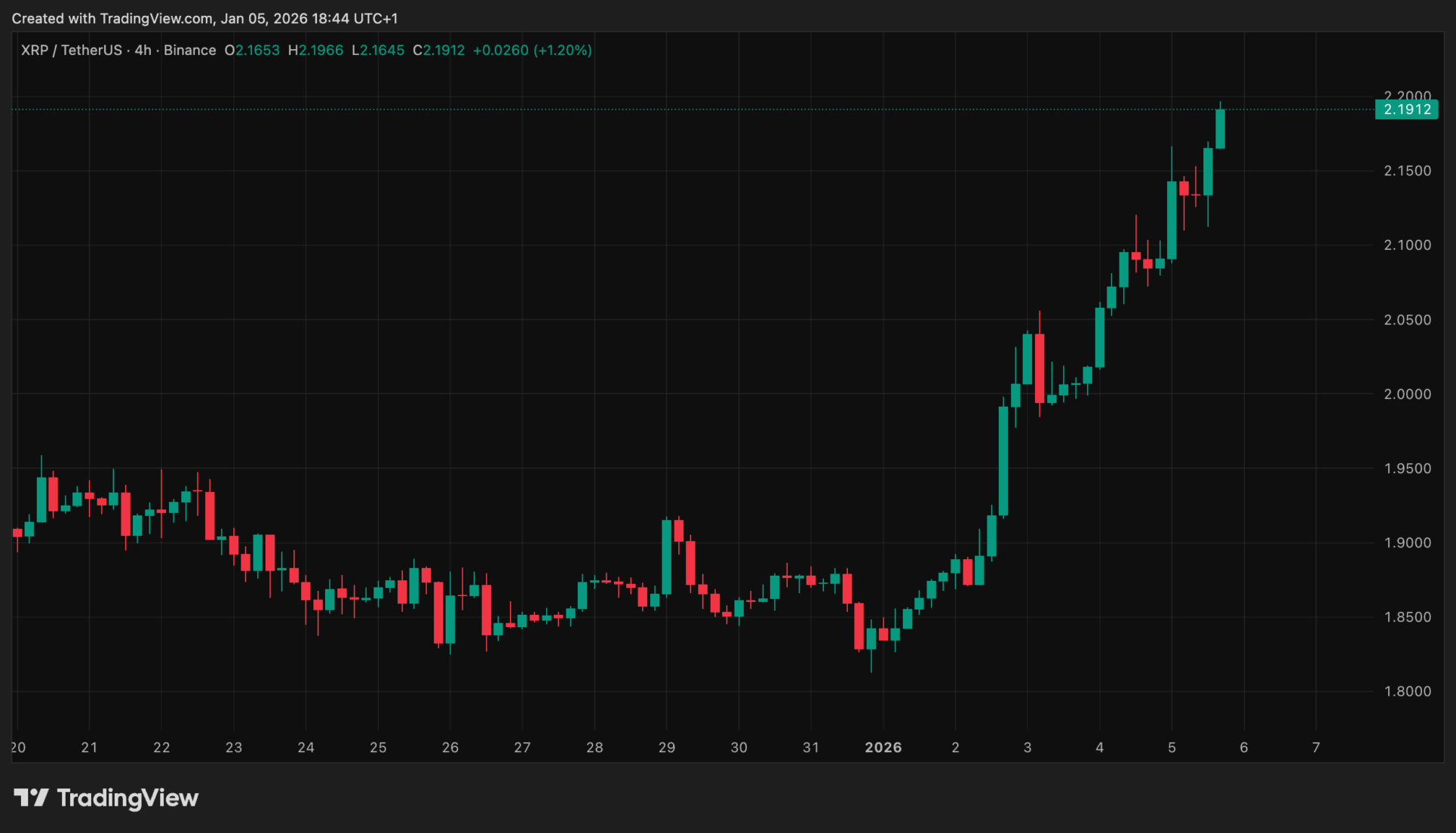 XRP ha comenzado 2026 con un fuerte repunte en su cotización. El precio aumentó un diecisiete por ciento la semana pasada, superando la barrera de 2,16 dólares. No veíamos este nivel desde principios de diciembre.