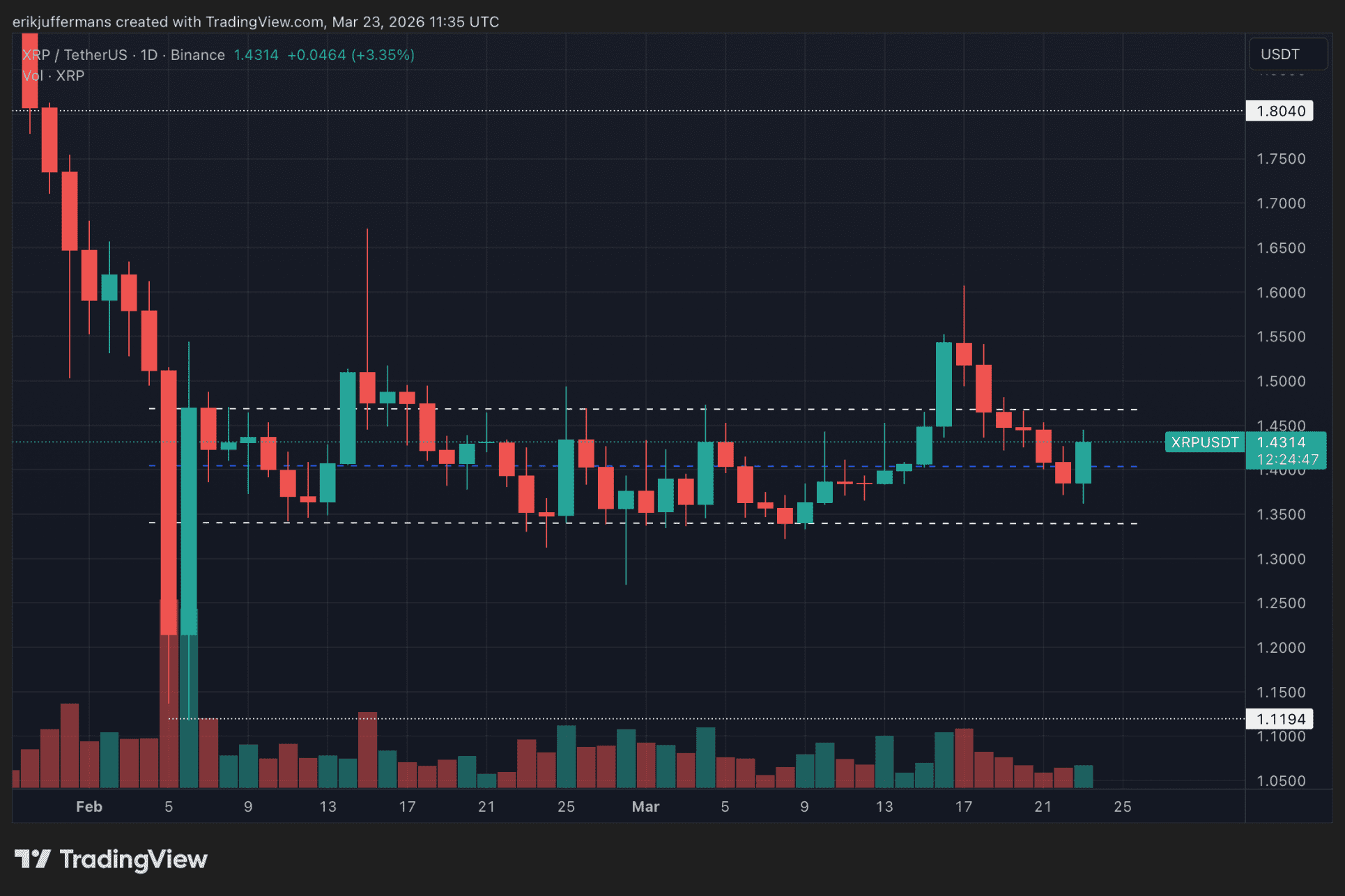 Pero esto no es suficiente para XRP, advierte el analista. La moneda sigue en el canal lateral prolongado de los últimos meses. La resistencia crucial se ubica un poco más arriba, alrededor de $1,46 en el gráfico diario.