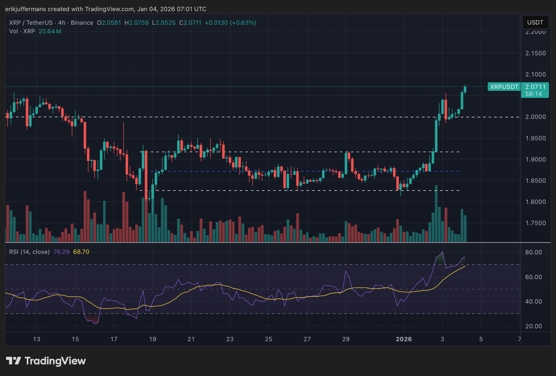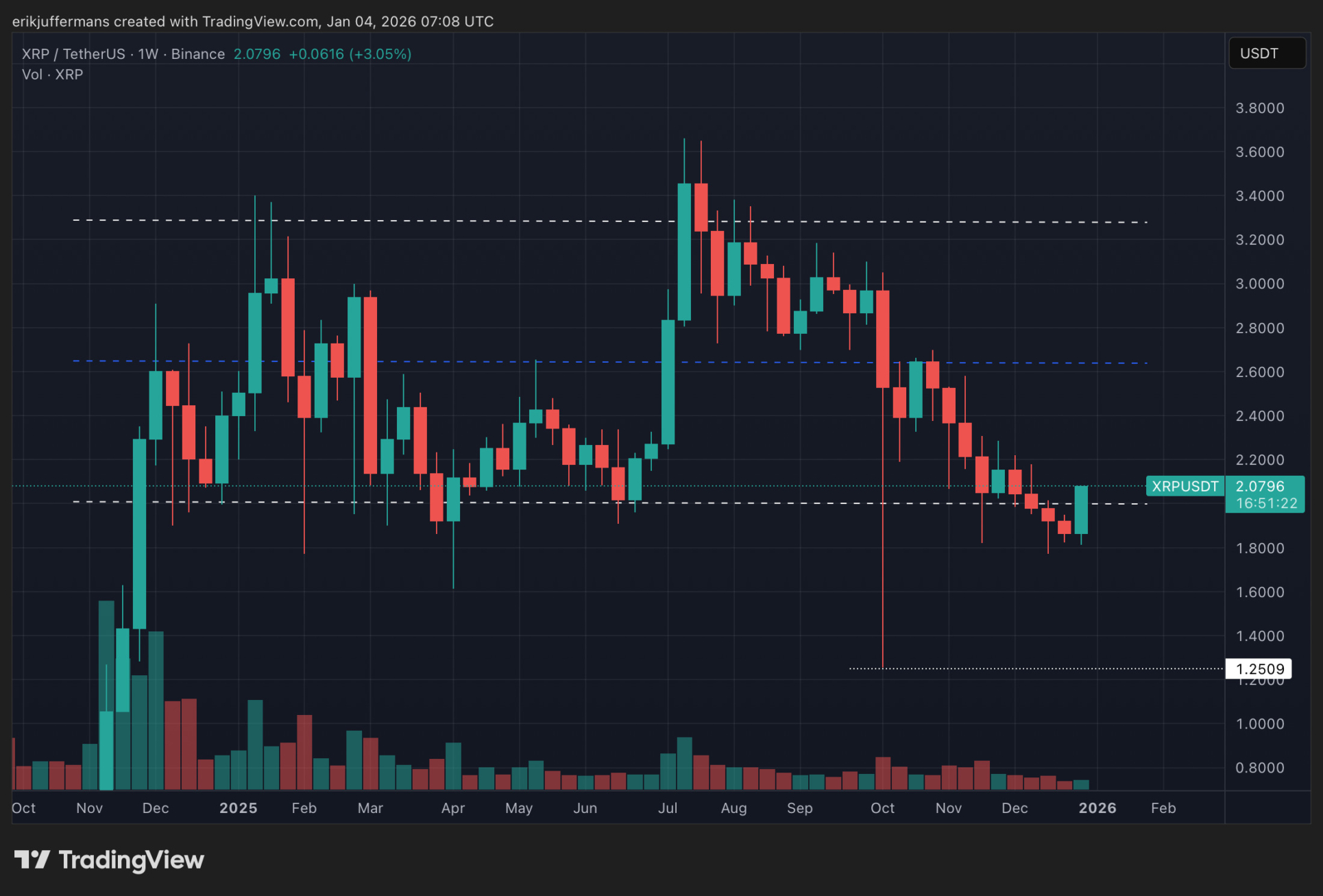Ripple (XRP) ha comenzado el año de manera impresionante. Al inicio del nuevo año, el precio se situaba en 1,82 dólares, pero ya ha subido casi un 14% hasta alcanzar los 2,07 dólares. ¿Es este el inicio de un nuevo rally de XRP? El analista técnico Erik Juffermans de Newsbit busca respuestas.