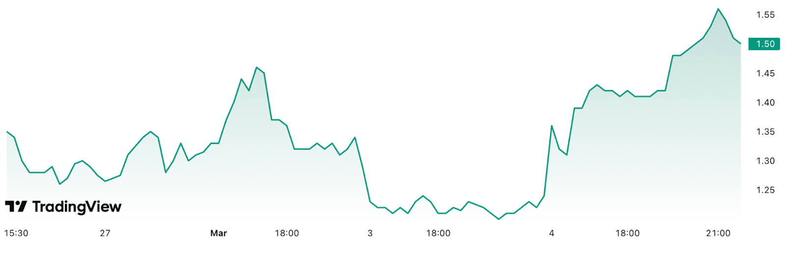 La acción experimentó un fuerte salto. Ayer, la bolsa abrió a 1,22 dólares y luego el precio subió hasta un máximo de 1,59 dólares. Al momento de redactar este informe, la acción se encuentra en torno a los 1,50 dólares.