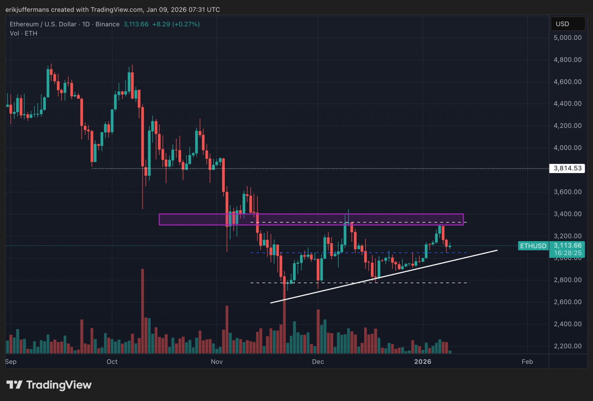 No obstante, el precio ha encontrado soporte justo en el punto medio del canal a 3.050 dólares y parece estar formando un suelo. Idealmente, queremos ver un nuevo aumento hacia la zona de resistencia mencionada anteriormente.