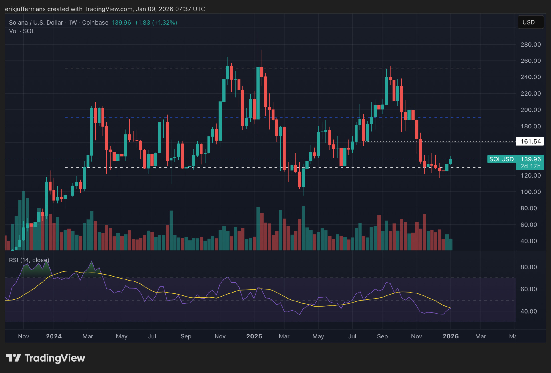 Ahora analizamos el precio de Solana (SOL), que ha subido un 3 por ciento en el último día. Debido a que Solana ha perdido algo de popularidad en las últimas semanas, revisamos el gráfico semanal para evaluar la situación.