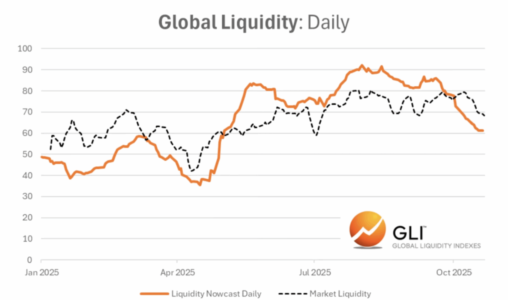 Michael Howell, toda una leyenda en el ámbito de la liquidez mundial, ha desarrollado junto a su equipo una herramienta que sigue este indicador a diario. Con datos de 90 economías, este indicador ofrece una visión clara de la evolución de la oferta monetaria mundial.