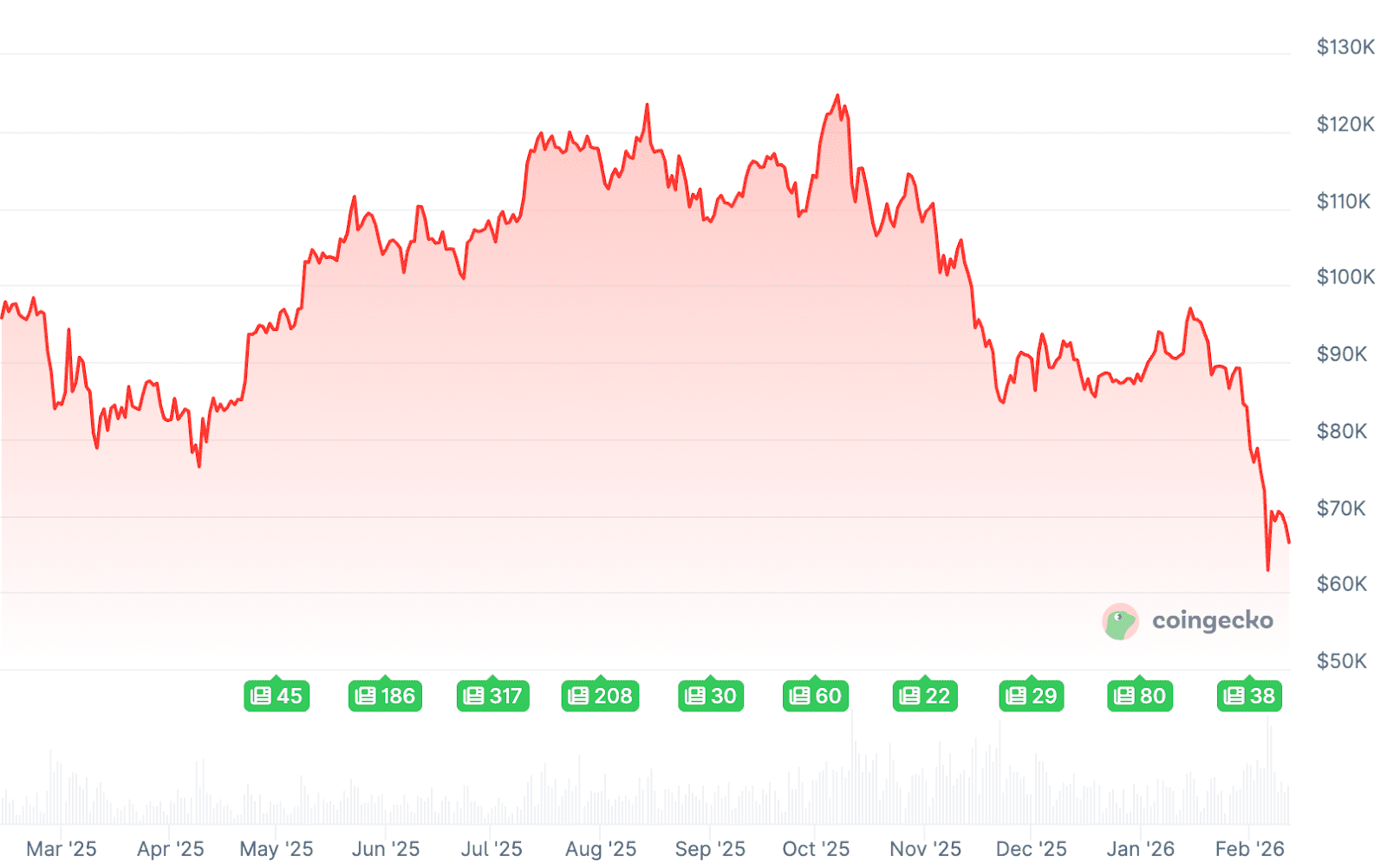 En octubre, el precio de Bitcoin aún superaba los 126.000 dólares. Desde entonces, la moneda digital ha perdido más de la mitad de su valor tras la reciente caída.