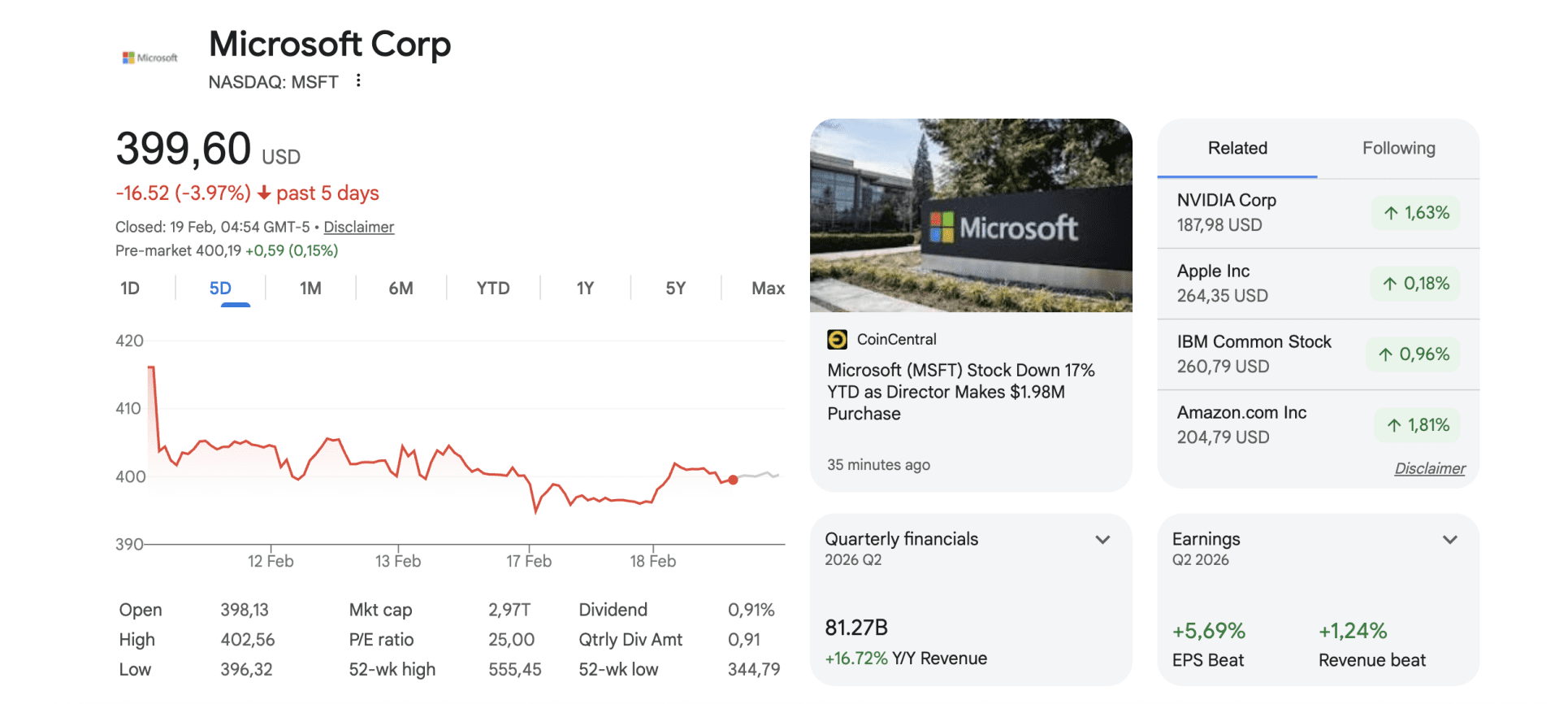 Por lo general, esos no son los peores momentos para entrar en acciones tan grandes. Sin embargo, por ahora no parece haber un cambio, ya que Microsoft ha caÃdo casi un 4 por ciento en los últimos cinco dÃas.