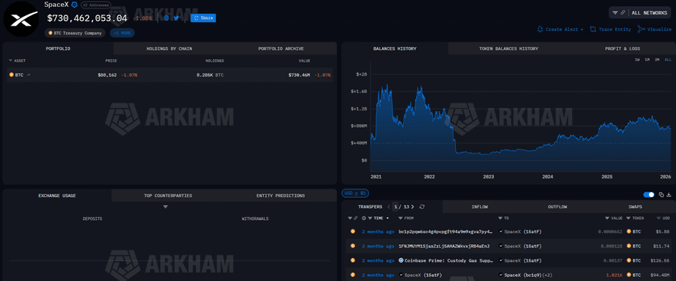 Es notable que SpaceX no haya realizado ventas significativas durante más de tres años. Los movimientos de wallet que sà se han observado parecen estar relacionados principalmente con la reestructuración interna y la seguridad, no con liquidaciones. AsÃ, SpaceX se encuentra entre las mayores empresas no cripto con exposición directa a Bitcoin.