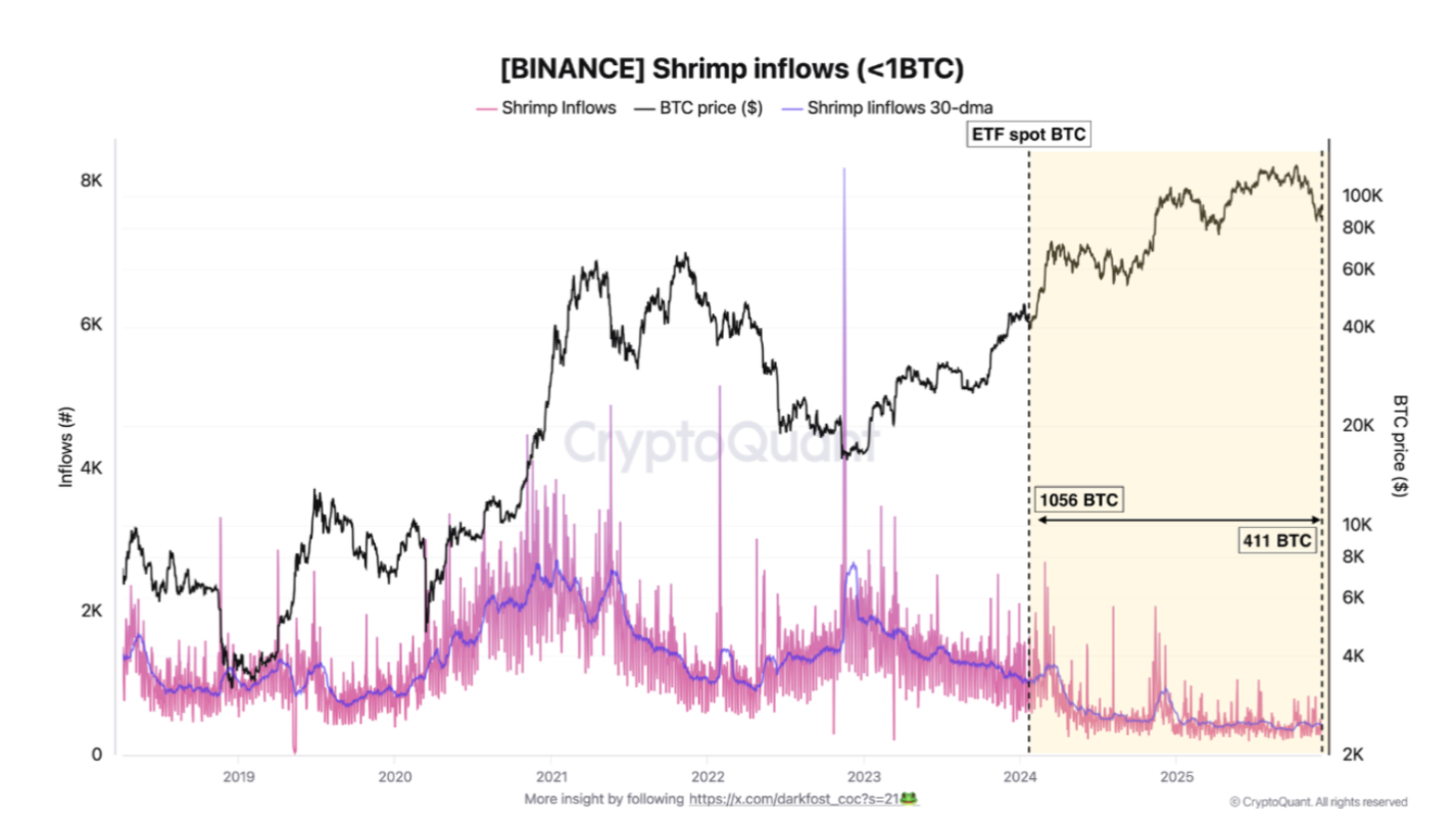 Bitcoin (BTC) alcanzó nuevos máximos en 2025, sin embargo, ocurre algo destacable: los pequeños inversores están enviando mucho menos Bitcoin a Binance, el mayor criptoplataforma del mundo.