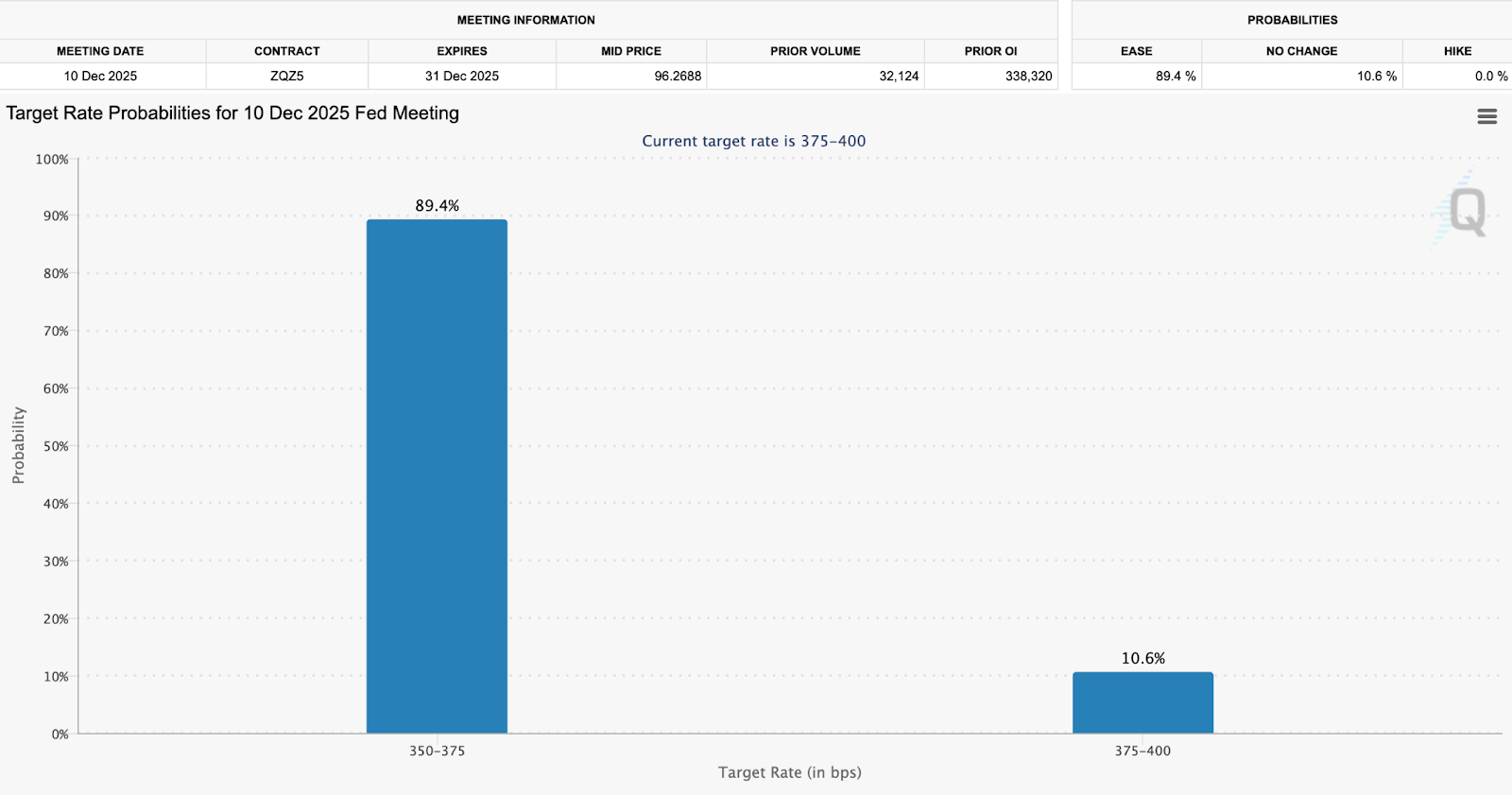 Bitcoin (BTC) está esta semana completamente enfocada en el banco central estadounidense. El miércoles 10 de diciembre a las 20:00 hora española, la Reserva Federal anunciará su última decisión sobre tasas de interés de 2025.