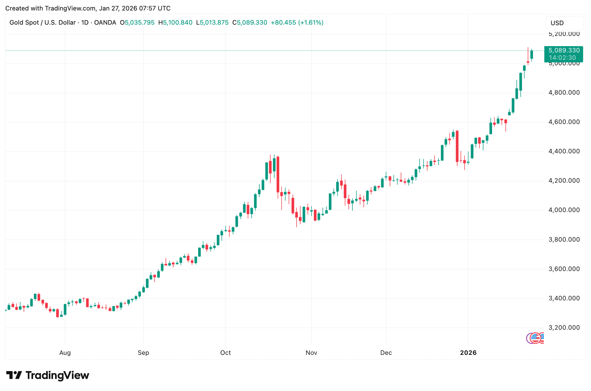 El oro supera los 5.100 dólares y la plata sube un 13% antes de un desplome histórico