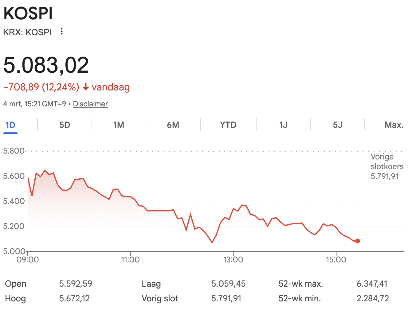 El índice de volatilidad del Kospi 200 alcanzó su nivel más alto desde noviembre de 2008. Los inversores extranjeros vendieron el martes acciones coreanas por el equivalente a 680 millones de dólares. Los inversores particulares compraron, aunque con menos agresividad que antes.
