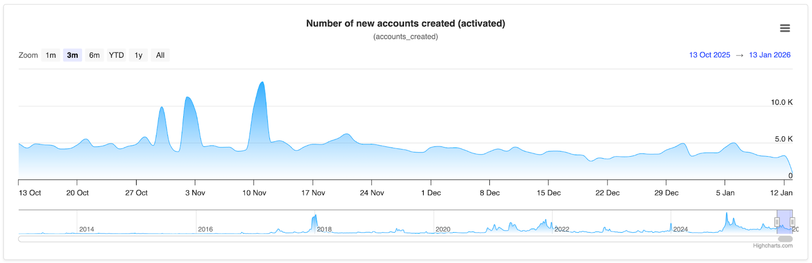A principios de 2026, la red de XRP muestra un desarrollo llamativo. Aunque el año comenzó con un breve repunte en el precio, el mercado se ha estabilizado. Al mismo tiempo, el número de nuevas direcciones XRP creadas ha disminuido drásticamente. ¿Es motivo de preocupación?