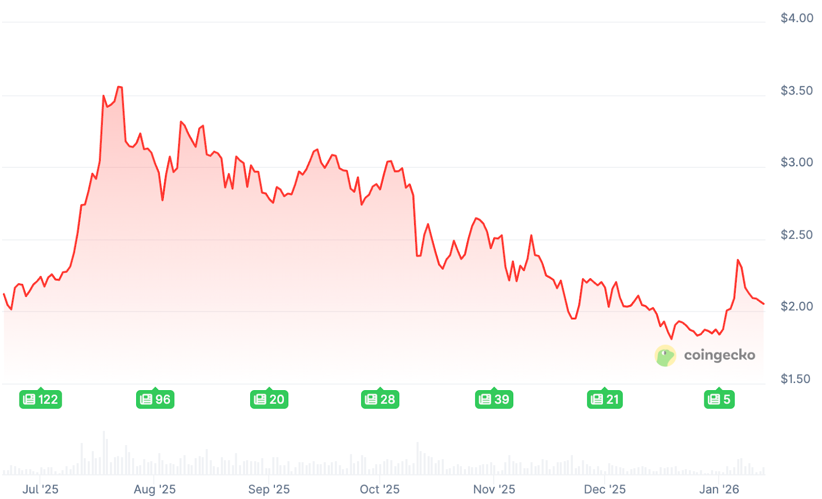 Sin embargo, ese movimiento al alza fue de corta duración. Al momento de escribir, XRP cotiza a 2,06 dólares, sin lograr romper de manera convincente la tendencia bajista que comenzó en verano.