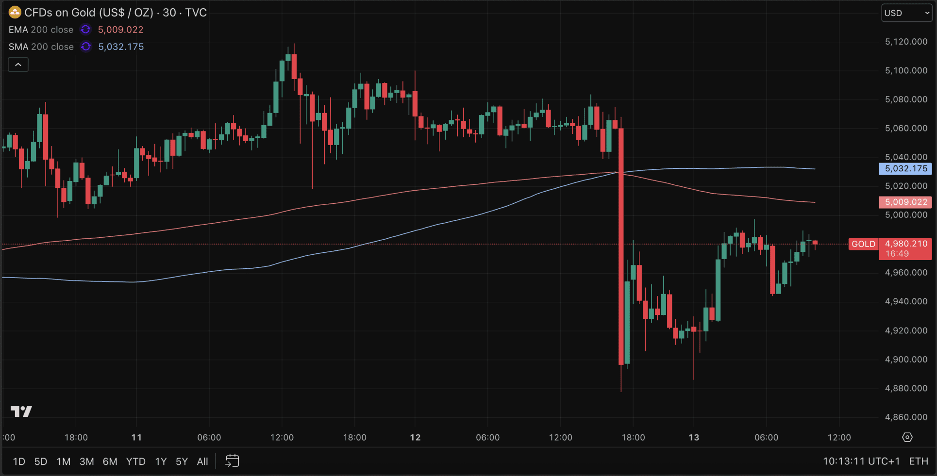 El jueves, el oro cayó un 3 por ciento, alcanzando su nivel más bajo en siete días, perdiendo así el nivel de 5.000 dólares por onza. Esta caída fue provocada por un repentino descenso en Wall Street.