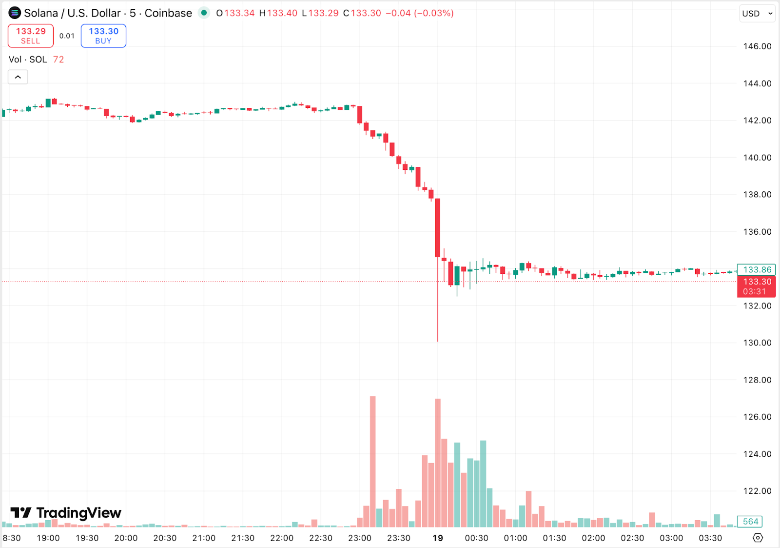 Durante la noche, Solana perdió un 9,1 por ciento en pocas horas. El precio descendió de más de 143 dólares a un mínimo cercano a los 130 dólares, eliminando casi todas las ganancias obtenidas a principios de este mes. Al momento de redactar este artículo, SOL se cotiza ligeramente por debajo de los 134 dólares.