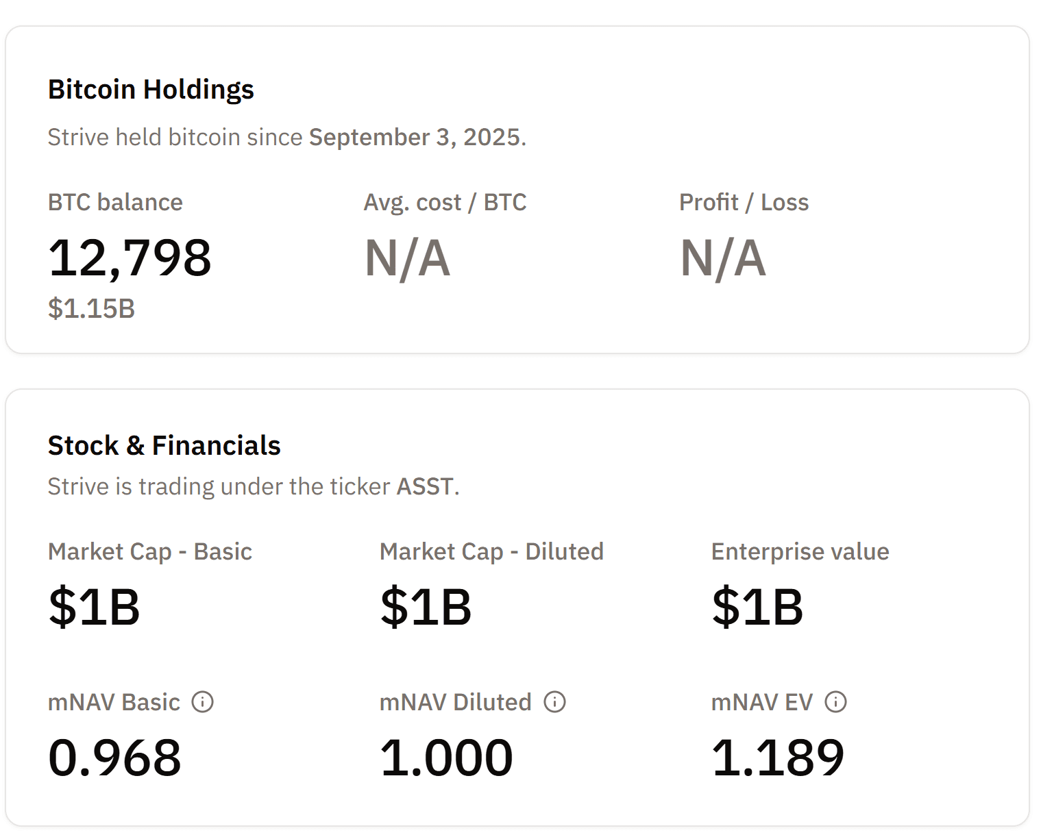A principios de este mes, Strive completó la adquisición de Semler Scientific, incluyendo su posesión de más de 5.000 BTC. Con esto, el total de Bitcoin de Strive asciende a casi 12.800 BTC, situándose entre las empresas cotizadas que mantienen Bitcoin como reserva estratégica.