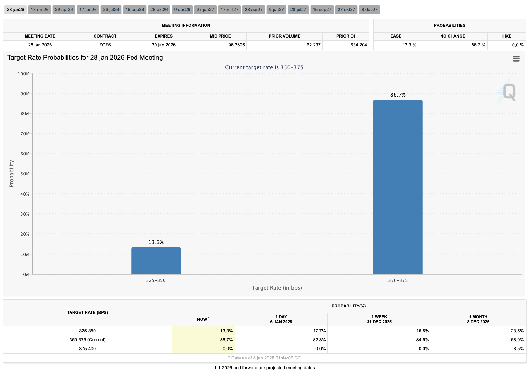 Por el momento, el mercado ve una probabilidad del 13,3 por ciento de una reducción en las tasas de interés, pero esto podría cambiar tras los datos laborales del viernes, así como con la información adicional de la próxima semana.