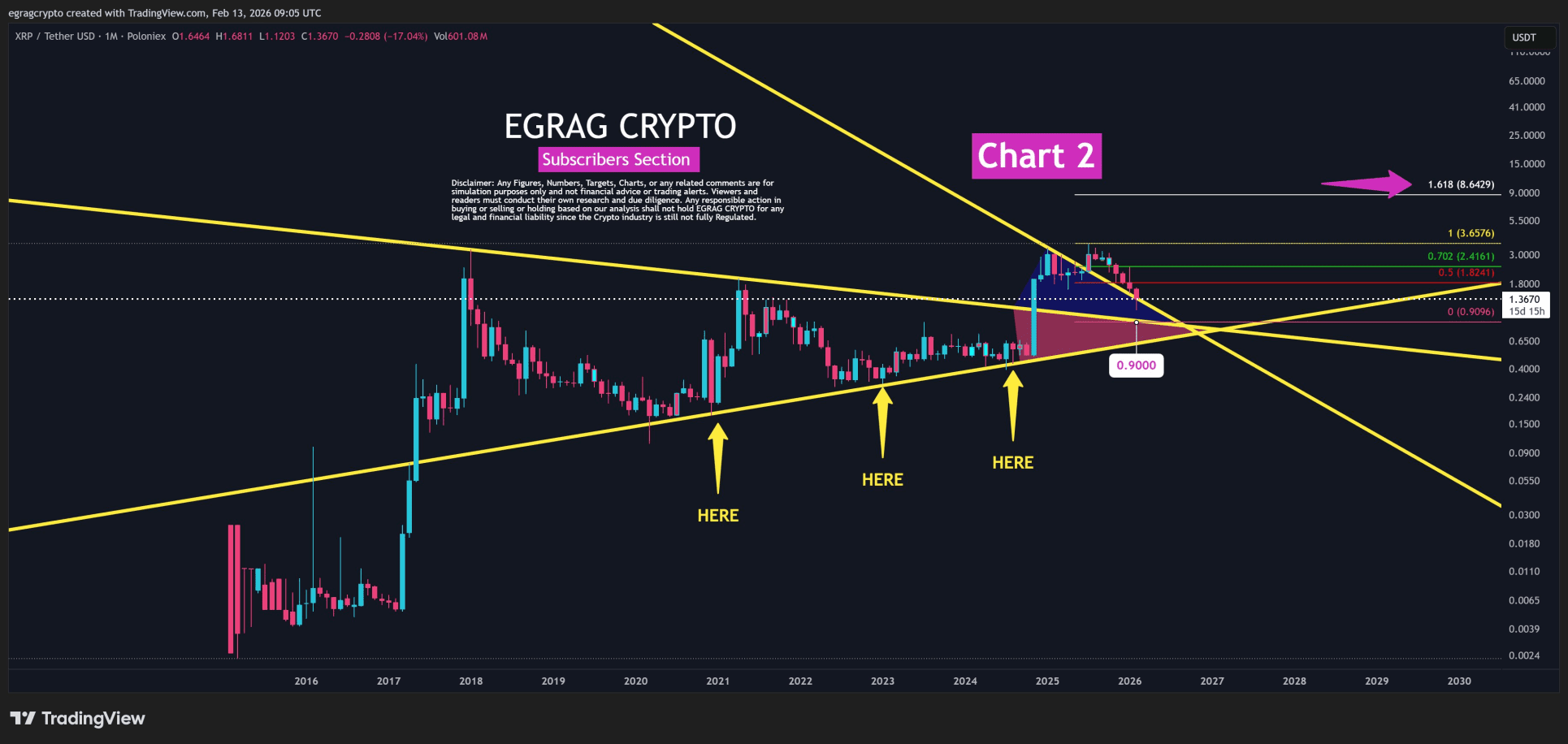 Según el conocido analista EGRAG, el precio de XRP se encuentra en un punto crítico. Basándose en gráficos mensuales, observa dos posibles escenarios a largo plazo, en los que el precio de XRP podría subir hasta 8 o incluso 11 dólares.